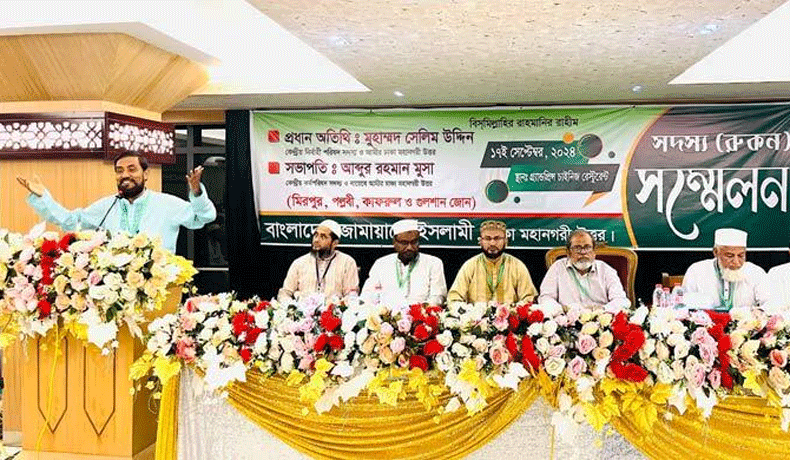 মঙ্গলবার (১৮ সেপ্টেম্বর) রাতে রাজধানীর মিরপুরেরে একটি রেস্টুরেন্টে জামায়াতে ইসলামী ঢাকা মহানগরী উত্তরের মিরপুর, কাফরুল, পল্লবী ও গুলশান জোনের যৌথ আয়োজনে এক সদস্য (রুকন) সম্মেলনে প্রধান অতিথির বক্তব্যে এসব কথা বলেন তিনি।